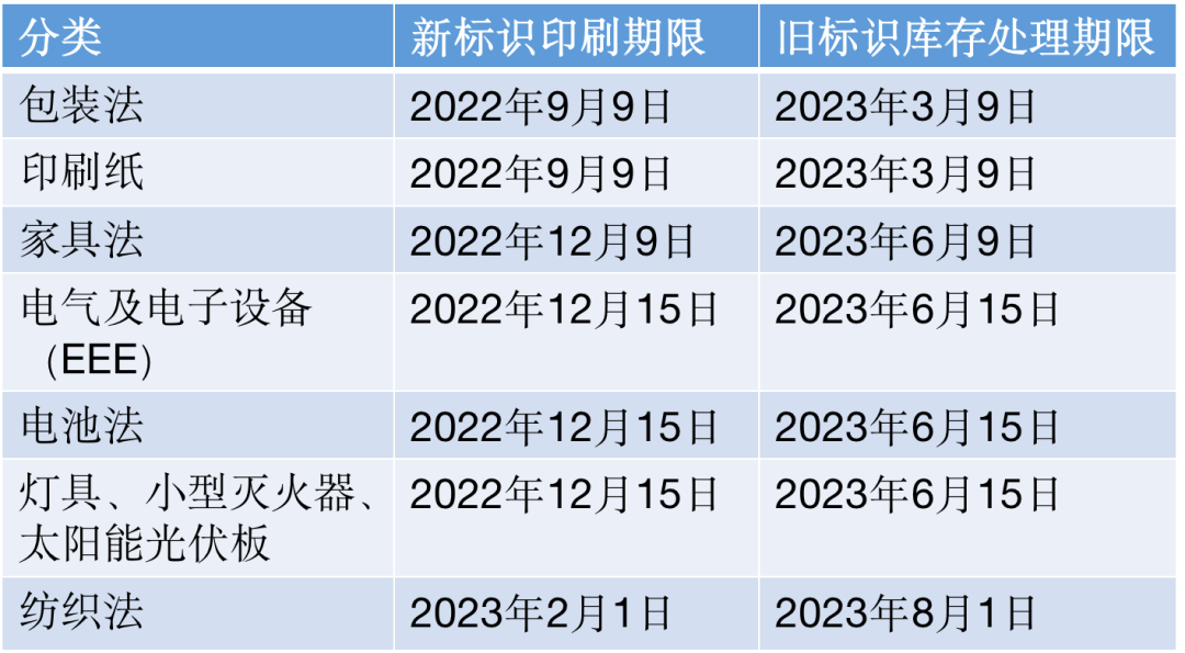 注:自 2022 年 1 月起的新 Triman 标志法规