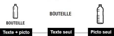 例如:包装是瓶子,则可用BOUTEILLE+瓶子图案/法语BOUTEILLE/瓶子图案的形式来表示。