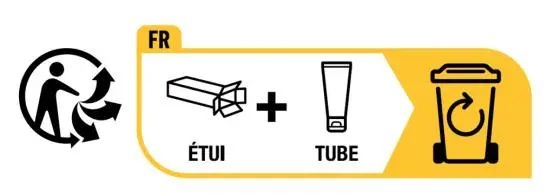 TRIMAN标志+FR(国家代码)+可回收的部件(纸箱+塑料)+回收垃圾桶(黄色垃圾桶)